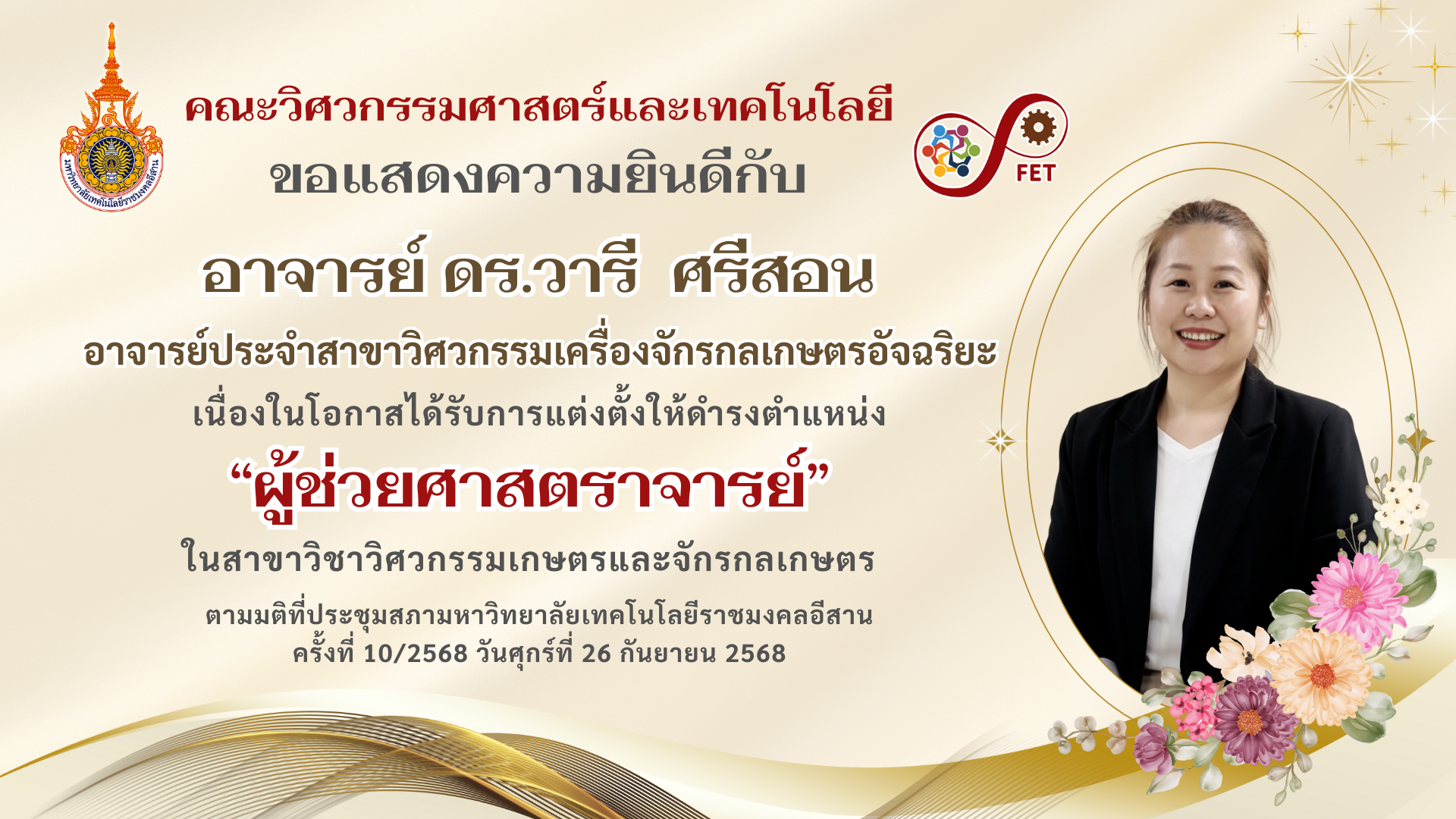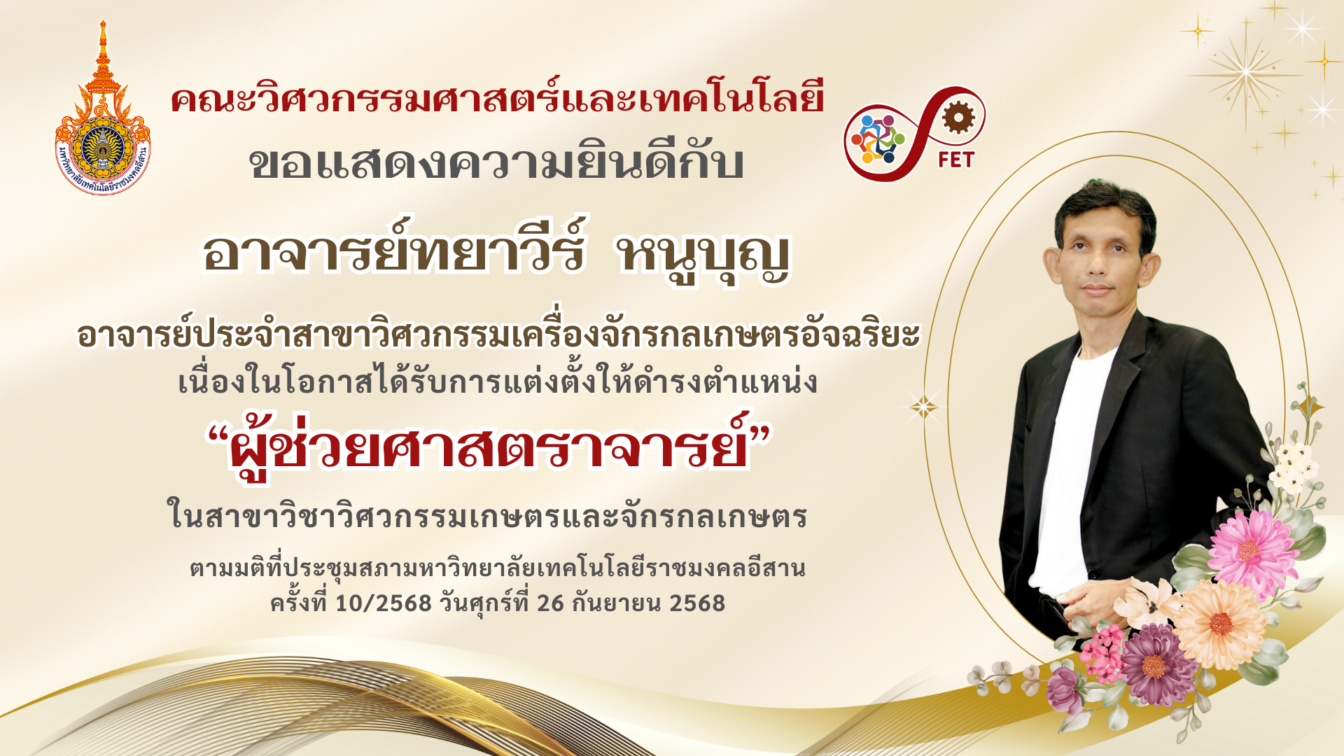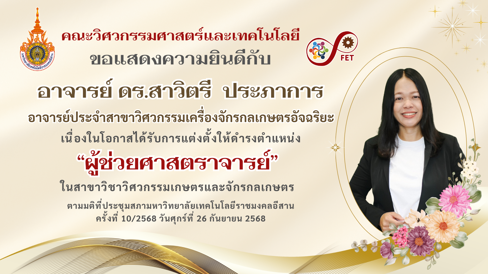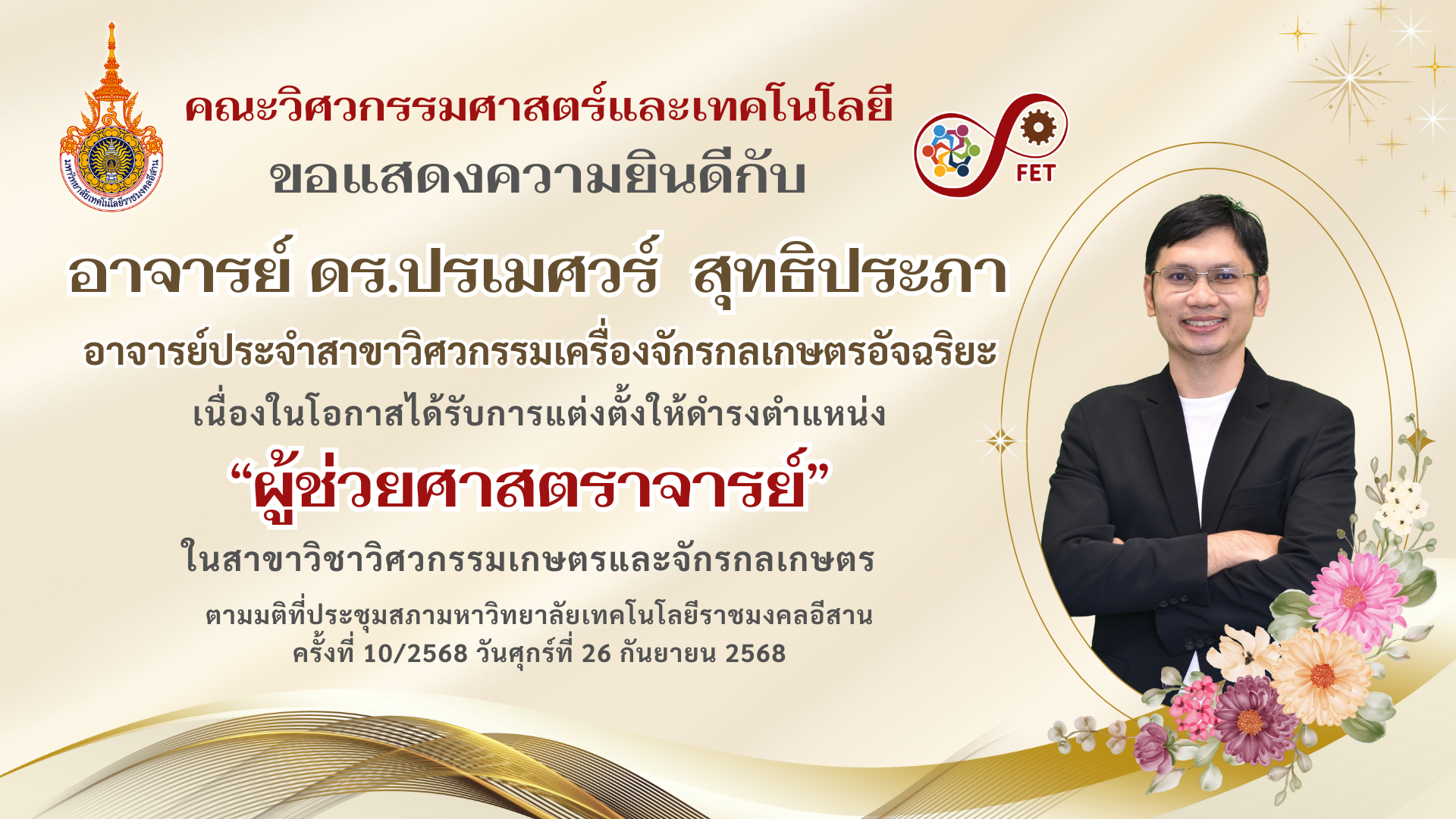 คณะวิศวกรรมศาสตร์และเทคโนโลยี ขอแสดงความยินดีกับคณาจารย์